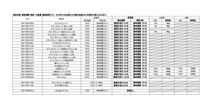 この度、誠に心苦しいお知らせではございますが、2025年10月1日(水)より、一部商品の内容量の見直し、ならびに価格改定を実施させていただくこととなりました。