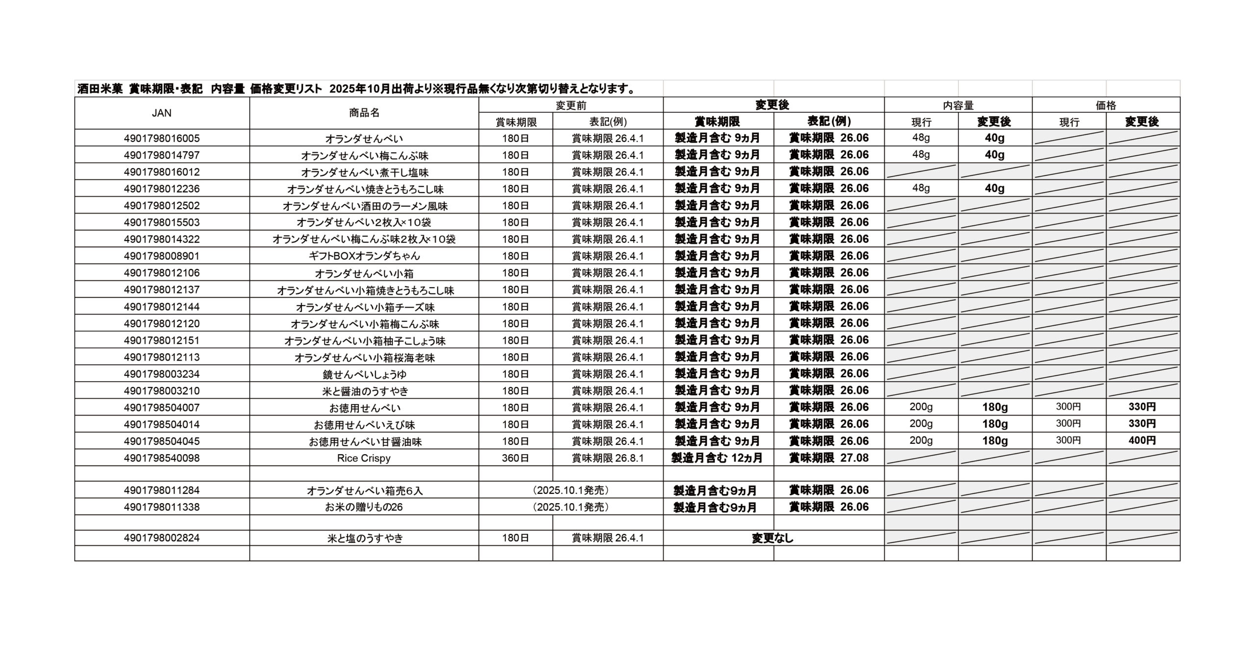 平素より酒田米菓をご愛顧いただきまして、誠にありがとうございます。