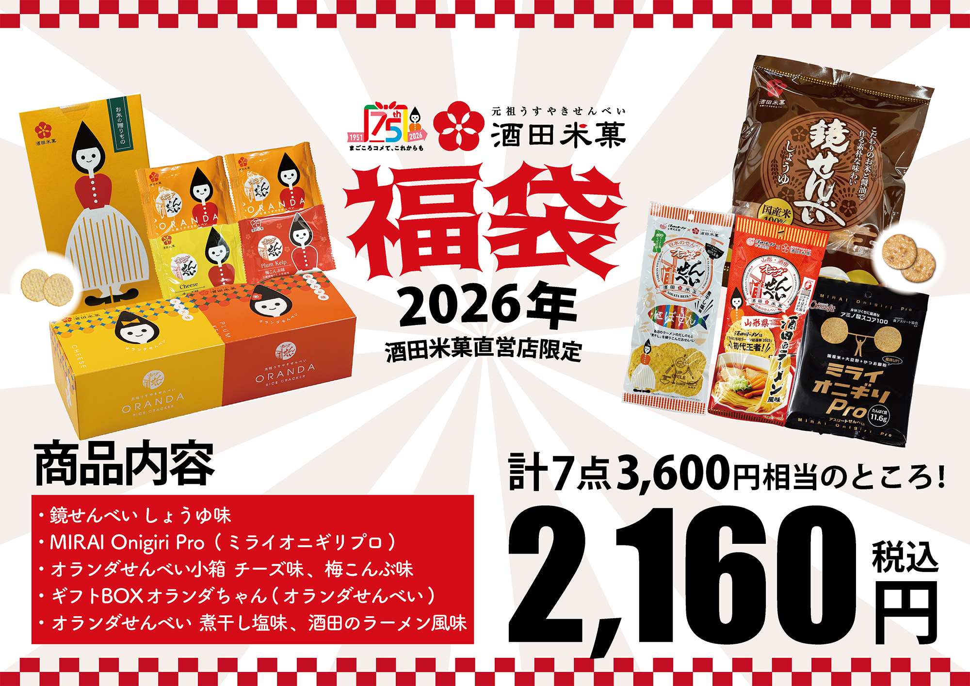 各店初売り開始日時と酒田米菓福袋2026についてのお知らせです。