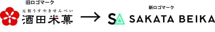 新しいロゴマークは、酒田米菓(SAKATABEIKA)のイニシャル「S」とSAKATAの母音である「A」をモチーフにデザインしました。