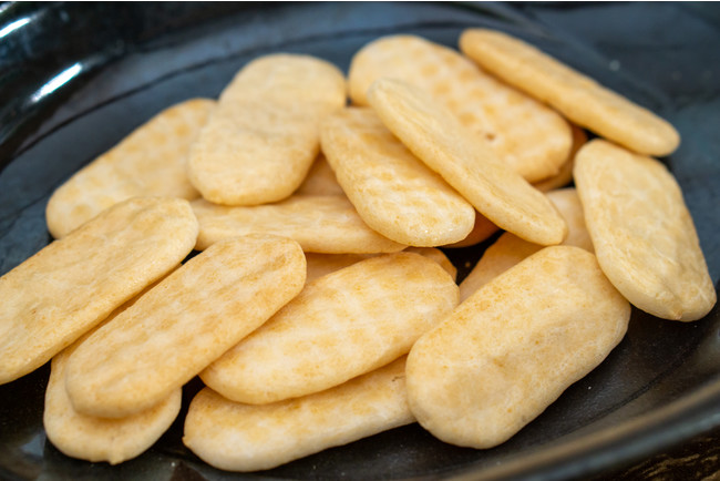 これを受け、酒田米菓では電話営業で「せんべいを美味しく食べるだけで、咀嚼機能をチェックできる。こんなせんべいがあったら利用しますか?」と歯科医院にヒアリングを行いました。架電件数約一万件のうち、約5割の歯科医院が「利用したい」と回答(2022年7月25日現在)。そこで酒田米菓は、誰でも簡単に咀嚼機能低下がチェックできる、判定用のせんべいの開発に着手しました。