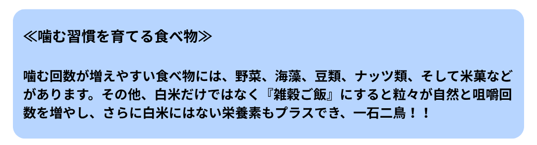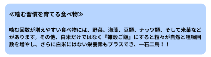 こうした栄養と同じくらい大切なのが「よく噛んで食べること」です。